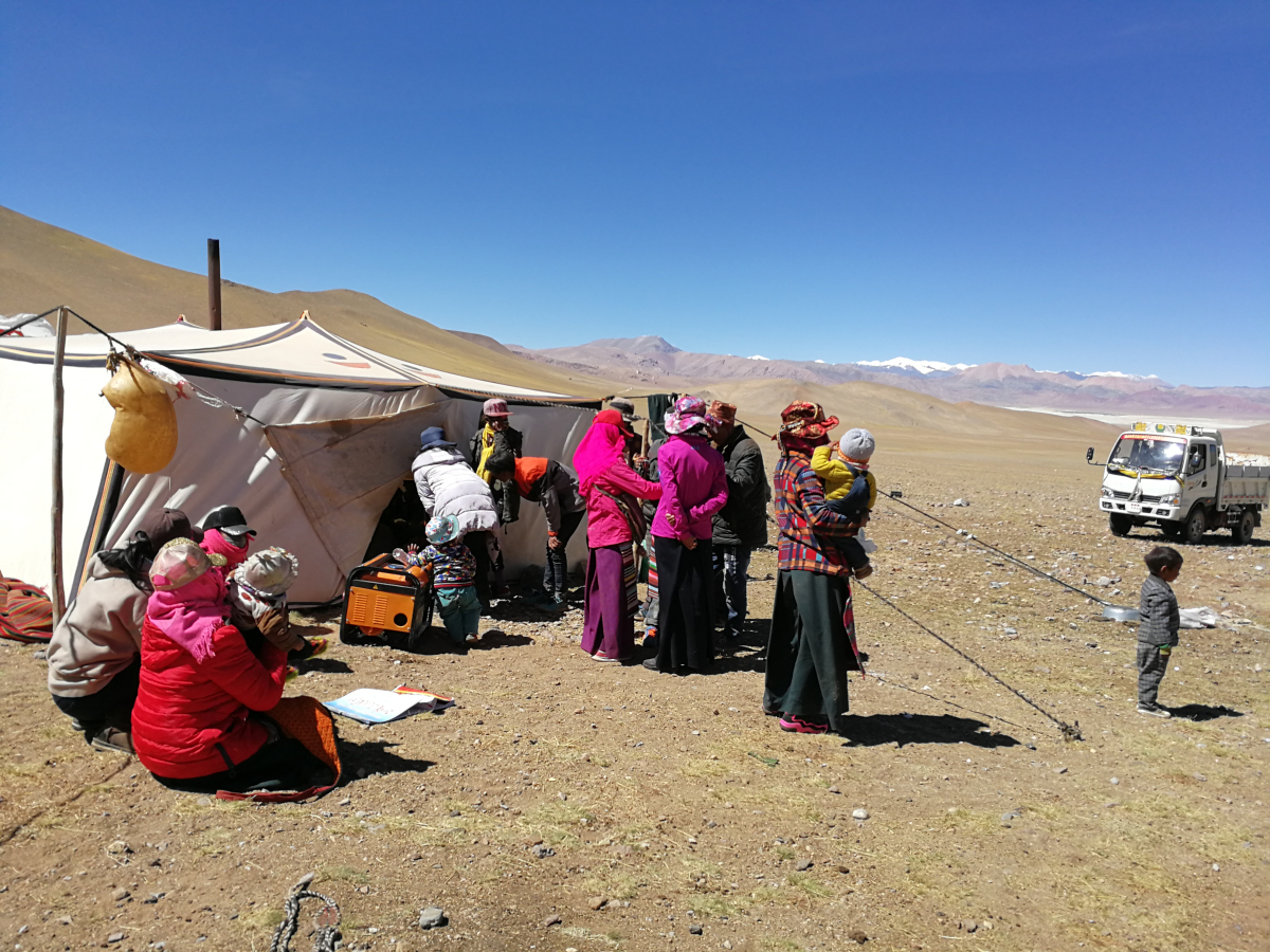 我仔細(xì)觀察四組前來(lái)的牧民,不管大人小孩,衣服都是干干凈凈的。那普居委會(huì)由李毛措主任團(tuán)隊(duì)駐村管理,那普居委會(huì)是本地的示范居委會(huì),因?yàn)檎芾淼卯?dāng),衛(wèi)生安全普及到位,居委會(huì)傳染病、包蟲(chóng)病的感染人數(shù)很少。他告訴我,牧民們要穿戴干凈、講衛(wèi)生其實(shí)很難,他們要到很遠(yuǎn)的地方才有水源,而且天氣惡劣寒冷,洗衣服都是一件困難的事情。