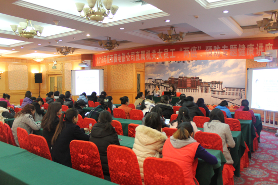 2016年3月7日下午,在三八婦女節(jié)即將來臨之際,我院李君副院長受邀于西藏電信公司及中國郵政儲蓄銀行西藏自治區(qū)分行進(jìn)行女性健康知識、備孕二胎媽媽孕前檢查及“兩癌”篩查健康知識講座,并就女性“宮頸癌”、“乳腺癌”兩大癌癥預(yù)防篩查等健康知識作出詳細(xì)講解。
