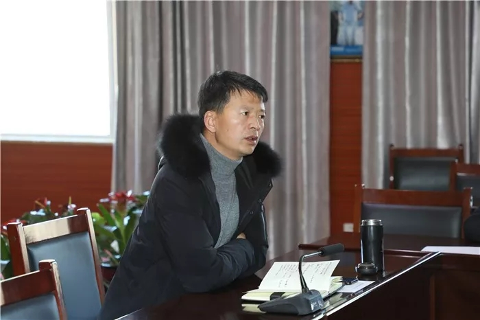 各負責人會上作說明·多杰太(左一) 、田鵬(右一)、羅布次仁(左二)、許鵬杰(右二)、李紀偉(左三)、李麗(右三)