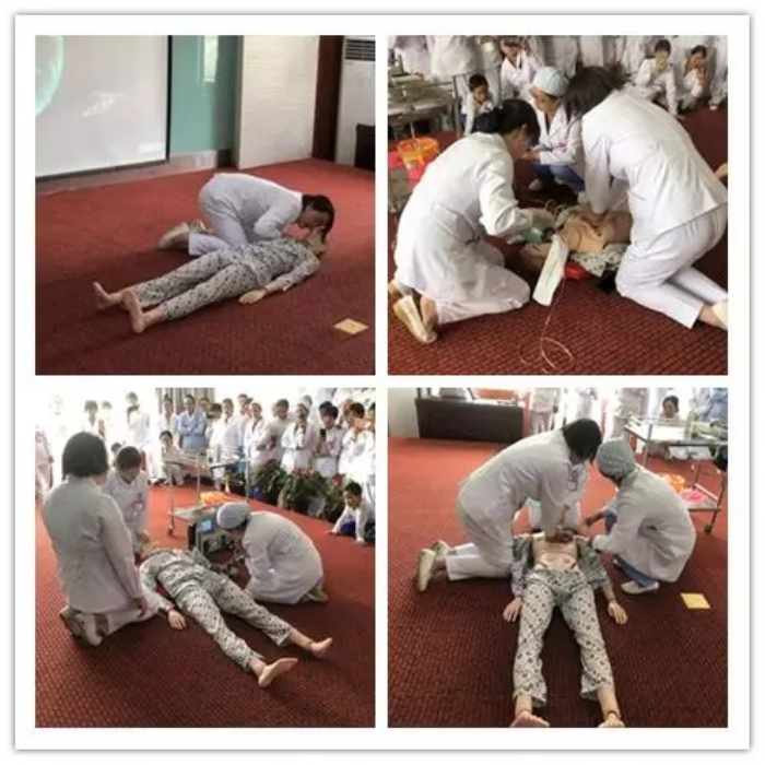 護理部主任王青青、兒科周玲護士長及產(chǎn)科二病區(qū)代理護士長李艷三人配合進行了心肺復(fù)蘇除顫操作技術(shù)。本次講課內(nèi)容豐富并貼近實際工作,老師現(xiàn)場操作演示護理技術(shù),護理人員積極互動,各科室分別派出三人進行了實操演練,在老師的指導(dǎo)下熟悉了流程并掌握了重點步驟。