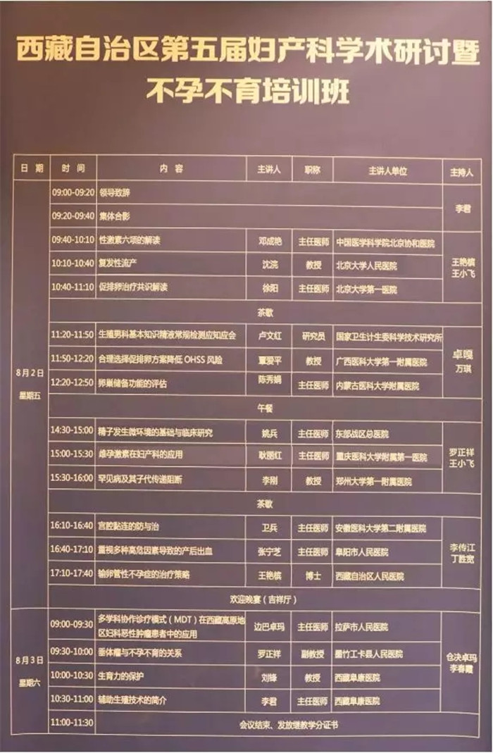 西藏自治區(qū)第五屆婦產(chǎn)科學(xué)術(shù)研討會(huì)暨不孕不育培訓(xùn)班日程安排