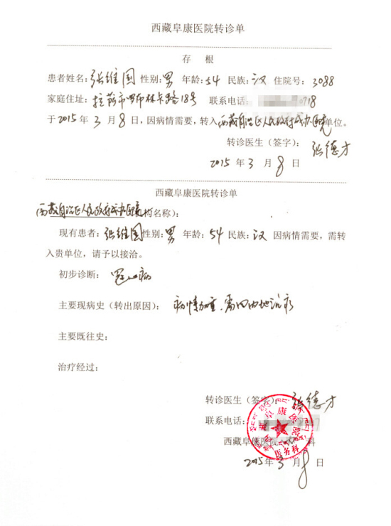 1、凡通過(guò)西藏阜康醫(yī)院轉(zhuǎn)診到西藏自治區(qū)人民政府成都辦事處醫(yī)院就診的患者,需前往阜康醫(yī)院領(lǐng)取“轉(zhuǎn)診單”,或在線下載,蓋阜康醫(yī)院公章后,持“轉(zhuǎn)診單”前往成辦醫(yī)院就診;