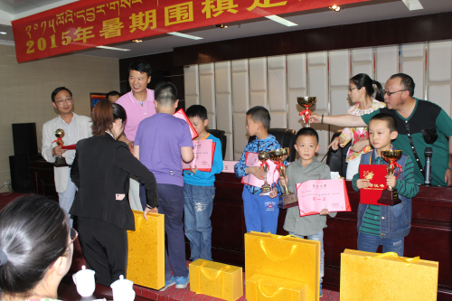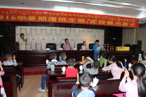 7月28日, 拉薩市2015年暑期圍棋定級(jí)/定段賽頒獎(jiǎng)儀式在拉薩棋院三樓會(huì)議室召開,出席嘉賓有拉薩棋院院長(zhǎng)王斌、拉薩棋院秘書長(zhǎng)及職業(yè)圍棋隊(duì)教練陳盈女士、拉薩棋院圍棋部副主任趙鈞、棋院老師陳學(xué)滸及本次參賽的學(xué)生和家長(zhǎng)。首先王斌院長(zhǎng)代表拉薩棋院歡迎大家的到來(lái)。從今年4月26日拉薩棋院成立到現(xiàn)在不到半年的時(shí)間,就已經(jīng)在5月1日、2日成功的舉辦了“2015春季‘阜康杯’拉薩市少兒圍棋定級(jí)賽”,并得到了各界的大力支持和認(rèn)同。為了改善棋手們的學(xué)棋環(huán)境,棋院又投資數(shù)萬(wàn)元購(gòu)置棋桌、棋盤等設(shè)施,棋院在每間教室的休息區(qū)均安裝了WiFi。據(jù)王斌院長(zhǎng)介紹,棋院準(zhǔn)備接下來(lái)培養(yǎng)更多的圍棋老師到各大幼兒園、小學(xué)教授圍棋,待辦學(xué)條件成熟還可能增加書法等項(xiàng)目,讓西藏的適齡小孩得到更多的琴棋書畫的熏陶及教育。