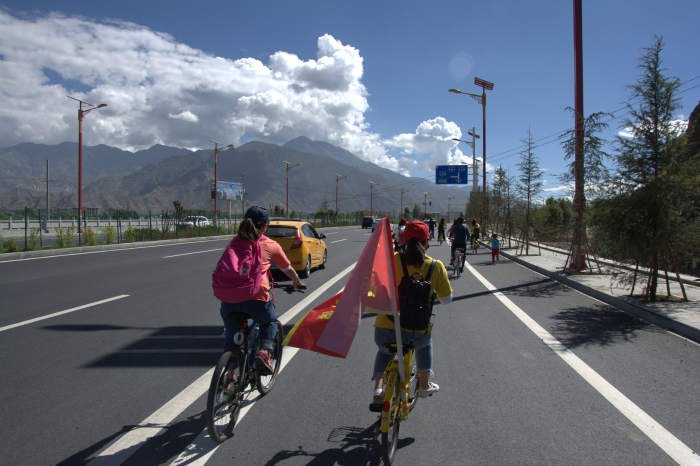在活動(dòng)開始前,工作人員對(duì)騎行人員的裝備,紀(jì)律以及騎行過程中的注意事項(xiàng)等做了嚴(yán)格的要求。騎行路線從拉薩大藥房出發(fā),沿著德吉路、太陽島東橋、318國(guó)道,最后達(dá)到普巴林公園。