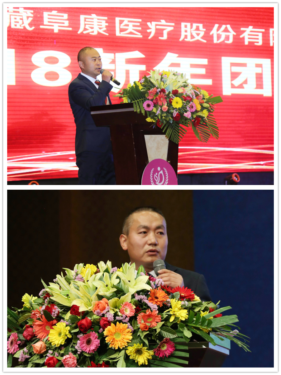 隨后,董事長王斌走上講臺飽含激情地說“我之存在,因為有你”,并向所有來賓鞠躬致謝。董事長王斌講述了阜康發(fā)展史、阜康人的奮斗史,從2005年的47名員工到現(xiàn)在的1024名員工,并再次感謝一路伴隨阜康成長的所有人,還指出2018年是阜康發(fā)展史上很關(guān)鍵的一年,要早計劃、早安排、早部署,要以十九大精神為指導(dǎo),堅持科學(xué)發(fā)展觀,早日把阜康建設(shè)成為現(xiàn)代化醫(yī)院。
