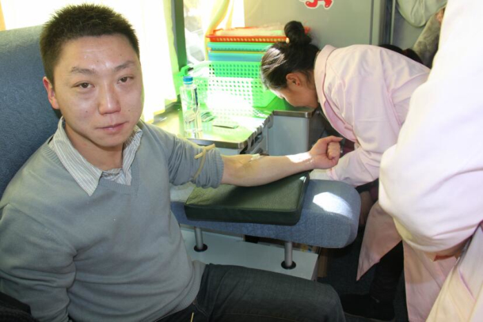 近日拉薩市血庫全線告急,血庫面臨血荒的危機(jī)。在得知這一緊急情況后王斌懂事長、劉瀟瀟總經(jīng)理立即組織阜康員工積極獻(xiàn)血,在阜康各位領(lǐng)導(dǎo)的帶領(lǐng)下,2013年1月30日他們來到阜康婦產(chǎn)兒童醫(yī)院血液中心采血點義務(wù)獻(xiàn)血。采血現(xiàn)場筆者看到在阜康婦產(chǎn)兒童醫(yī)院呂果梅副院長和拉薩大藥房何文秀店長的組織下大家排著整齊長隊等待獻(xiàn)血。筆者有幸采訪到了阜康醫(yī)院心腦血管分院內(nèi)科主任于永軍,據(jù)于主任介紹他已是多次參與獻(xiàn)血,阜康的員工都是很無私的,很多時候在面臨病人急需輸血而血站又缺血的情況下阜康員工就會自發(fā)組織在一起去血站為病人獻(xiàn)血,這種情況總是經(jīng)常出現(xiàn)。于主任告訴筆者自己獻(xiàn)血也是想起到一個帶頭的作用,很多人不愿獻(xiàn)血就是怕對身體有傷害,醫(yī)生護(hù)士積極獻(xiàn)血能告訴大家適當(dāng)獻(xiàn)血不但對身體沒有害處還有利于身體健康。