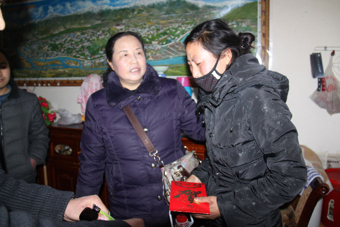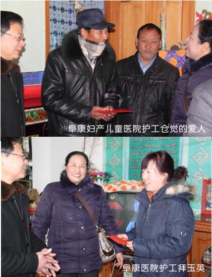 阜康集團(tuán)在2013年春節(jié)、藏歷年來(lái)臨之際,在阜康醫(yī)院、阜康婦產(chǎn)兒童醫(yī)院、阜康(國(guó)際)健康體檢中心三家醫(yī)院開展了“進(jìn)職工門、知職工情、暖職工心”送溫暖活動(dòng)。1月22日,公司下發(fā)了《關(guān)于開展2013年“雙節(jié)”送溫暖及特困職工幫扶活動(dòng)的通知》;2月1日,三個(gè)醫(yī)院的院領(lǐng)導(dǎo)對(duì)提交申請(qǐng)的員工進(jìn)行了資格審查,并最終確定了9名符合條件的員工為此次送溫暖活動(dòng)對(duì)象;2月3日,由阜康醫(yī)院李鋼副院長(zhǎng)、劉連福副院長(zhǎng)、阜康婦產(chǎn)兒童醫(yī)院呂果梅副院長(zhǎng)、阜康(國(guó)際)健康體檢中心席大力副院長(zhǎng)帶隊(duì),逐一將慰問(wèn)金、大米食用油等慰問(wèn)品送到了困難員工的家中。阜康婦產(chǎn)兒童醫(yī)院保潔員窮達(dá)的父母在她年幼時(shí)已經(jīng)過(guò)世,由于沒有文化,她只能選擇當(dāng)清潔工養(yǎng)家糊口,每月不到兩千塊錢的工資要供養(yǎng)弟弟妹妹上學(xué),要給弟妹生活費(fèi)、購(gòu)買學(xué)習(xí)資料的費(fèi)用,偶爾還要給弟妹買身新衣服,帶他們吃一頓好吃的,買一些營(yíng)養(yǎng)品。為了省下在外租房的錢,她選擇了入住醫(yī)院的員工宿舍,每天吃、住、上班都在醫(yī)院,她現(xiàn)在最大的心愿就是好好供養(yǎng)自己的弟弟妹妹上學(xué),讓他們考上大學(xué)有一個(gè)美好的前程,不用像自己一樣干最累的活掙最少的錢。窮達(dá)是一個(gè)愛笑的女孩子,即使說(shuō)起這些困難時(shí)也總是堅(jiān)信只要弟弟妹妹有出息了,以后的日子就會(huì)好起來(lái),她的樂觀向上時(shí)刻感染著身邊的每一個(gè)人,然而當(dāng)院領(lǐng)導(dǎo)將慰問(wèn)金慰問(wèn)品送到她手中時(shí),這個(gè)堅(jiān)強(qiáng)的女孩卻第一次在人前落了淚。阜康婦產(chǎn)兒童醫(yī)院保潔員曲宗租住在奪底路某個(gè)環(huán)境極差的小院子里20平方不到的出租房里,這樣的一間小房子是臥室是客廳也是廚房,然而生活的艱辛卻比不上她不幸的遭遇,她的丈夫沒有工作,一家人的生活全靠她微薄的工資,如果僅僅是如此還算差強(qiáng)人意,她那個(gè)不務(wù)正業(yè)的丈夫卻還經(jīng)常向她伸手要錢到外面去賭博、喝酒,一旦拒絕便是拳腳相向,且多次將她打得無(wú)法上班,甚至將她悄悄存起來(lái)的錢偷拿去喝酒賭博,每每說(shuō)起這些事情,曲宗便是淚流滿面,無(wú)法自持,讓聞?wù)邿o(wú)不為之心酸。