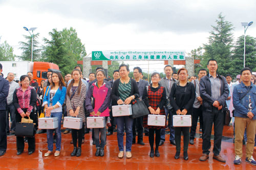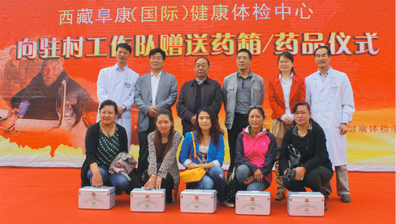 西藏阜康(國際)健康體檢中心王斌董事長首先向為促進西藏和諧發(fā)展長期駐村(居)的工作人員表示崇高的敬意!據(jù)了解,本次為拉薩市267個駐村(居)工作隊贈送的小藥箱中配備了急救類、解熱鎮(zhèn)痛類、治感冒類、止咳化痰類、抗菌藥物類等14類共31種常用藥品及電子血壓計,總價值約20萬元。王斌董事長在贈送儀式上講到“本次開展西藏阜康(國際)健康體檢中心向駐村(居)工作隊贈送藥箱活動,旨在為民解困難,為民辦實事,為我們駐村(居)工作人員健康做好堅實的后盾,促進西藏穩(wěn)定和諧發(fā)展。”王斌董事長希望能給駐村(居)工作人員帶來健康,同時也希望能在黨的群眾路線教育實踐活動中獻出民營企業(yè)的一份綿薄之力。