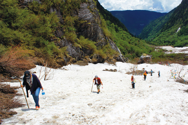 益西是從客棧出發(fā)后兩個(gè)小時(shí)到達(dá)的一處二十多米高的塌方區(qū)摔下去的,與她結(jié)伴的張見(jiàn)她滑落后,毫無(wú)猶豫也抱著頭跟著跳了下去。最后在塌方區(qū)的底部找到了已半昏迷狀態(tài)的益西,不知道他們倆是怎么攙扶著從崖下爬上大路的,又是如何拖著傷痛的身子在崎嶇蜿蜒、凹凸不堪的山路河溝走了兩個(gè)小時(shí)走回客棧的。