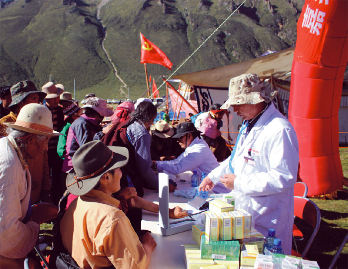 七月賽馬節(jié)期間,應(yīng)嘉黎縣縣政府及申扎縣縣委縣政府的真誠邀請(qǐng)。2015年7月25日,西藏阜康醫(yī)院義診隊(duì)帶著醫(yī)院的囑托、8萬元的藥品分別向嘉黎縣、申扎縣出發(fā)。7月26日,賽馬場(chǎng)里人頭攢動(dòng),熱鬧非凡。在西藏阜康醫(yī)院義診點(diǎn),在工作人員的維持下,大家排起了長(zhǎng)隊(duì),自覺有序地等待著專家給他們?cè)\治。專家們?yōu)槿罕姕y(cè)量血壓、診斷病情,耐心解答他們的提問,同時(shí)就高原常見病、多發(fā)病的防治知識(shí)進(jìn)行了認(rèn)真講解,增強(qiáng)了群眾的自我保健意識(shí)。