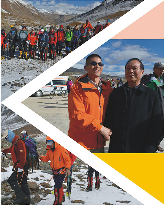 凌晨四點,全隊出發(fā),行走約兩個小時到達沖頂峰,攀爬約60—70度的登頂區(qū),最后的沖頂攀爬約90度的沖刺點,總共用時不到5個小時。腳下的積雪淹沒膝蓋,這樣的坡度,這樣稀薄的空氣,每走一步都是成功。洛堆峰攀登教練次仁旦達說,攀登雪山收獲的是三種快感:一是意志力的拼搏,越到最后爬不動時,靠的就是一種不放棄的意念,在這一過程中就錘煉了堅忍不拔的意志力;二是重新定義喜悅和滿足,有人享受到達頂峰的喜悅,也有人舍得放棄并滿足于經(jīng)歷,所以登山從來不以是否登頂衡量成??;三是真正體驗和感悟人生。人生就像登山,遙看目標似乎高不可攀,其實每向前一步,我們就距離目標更進一步。這三種感悟何嘗不是張洪滿滿的收獲。