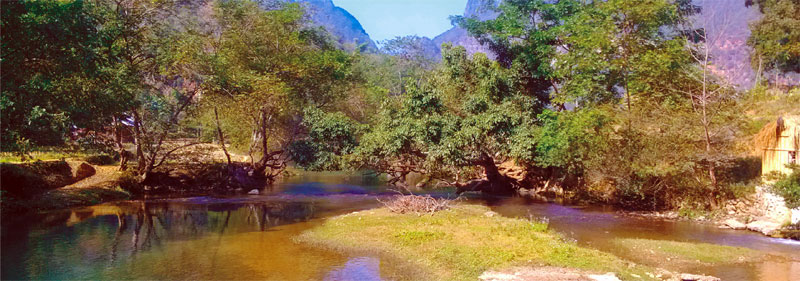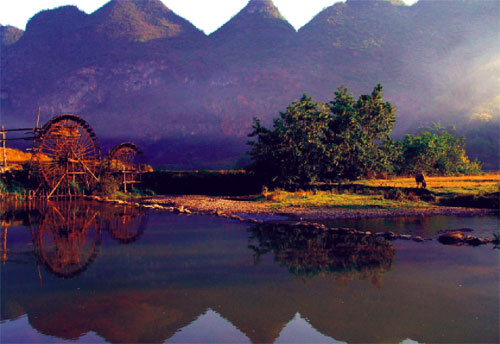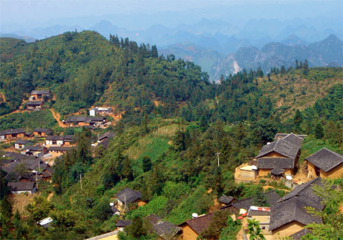 馱娘江消失在湯拿洞前,在猴爬巖洞后流經(jīng)一片崇山峻嶺環(huán)抱的平壩,又從桃源洞逝去,這個壩子就叫壩美村,一個好親熱的壯家山寨,位于云南省廣南縣八達(dá)鄉(xiāng)和阿科鄉(xiāng)之間,與廣西西林縣相鄰,一個現(xiàn)實中的世外桃源。