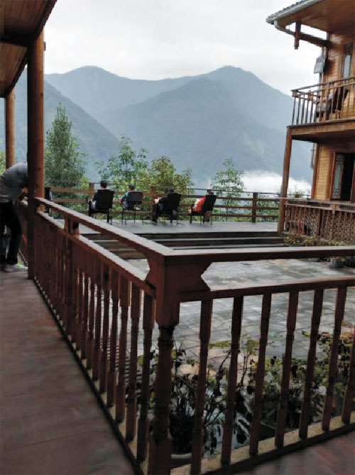 山窮水盡疑無路,柳暗花明又一村。幾個(gè)小時(shí)的奔波終于到達(dá)目的地,一個(gè)錯(cuò)落有致的小村莊。大家歡聚一堂,大快朵頤,雖然廚師并不專業(yè),但勝在食材天然。酒足飯飽之后,大家沿著木梯下樓進(jìn)行飯后娛樂。我坐在露天陽臺(tái)的藤椅上休息,一陣清風(fēng)拂過,伴著竹林搖曳的聲音,剎那間居然有種“倚樓聽風(fēng)雨,淡看江湖路”般微醺的感覺。