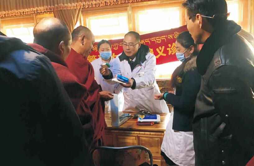 11月28日上午,我院慢病管理中心組織5位醫(yī)護(hù)人員在甘丹寺共計(jì)為200多名僧侶進(jìn)行免費(fèi)測血壓、血糖、氧飽和度以及發(fā)放常見疾病的藥物。義診期間得到了羅布次仁處長、索次主任的大力支持與幫助。體檢完畢后,羅布次仁處長帶領(lǐng)醫(yī)護(hù)人員參觀了寺廟的主殿,并贈(zèng)予甘丹寺主殿的金色哈達(dá),以表對(duì)阜康工作人員的感激之情。